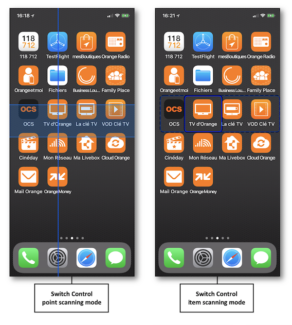 The accessibility Switch Control feature revolves around the point mode and the item mode.