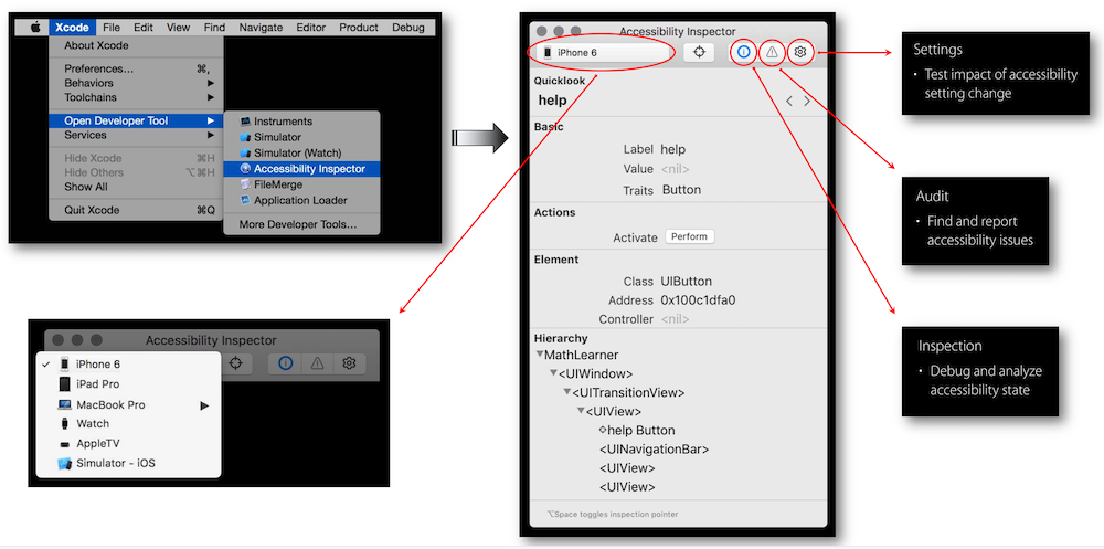 This video available on the official Apple website (session 407) aims at defining and using the Accessibility Inspector tool of Xcode, based on good practice implementation.