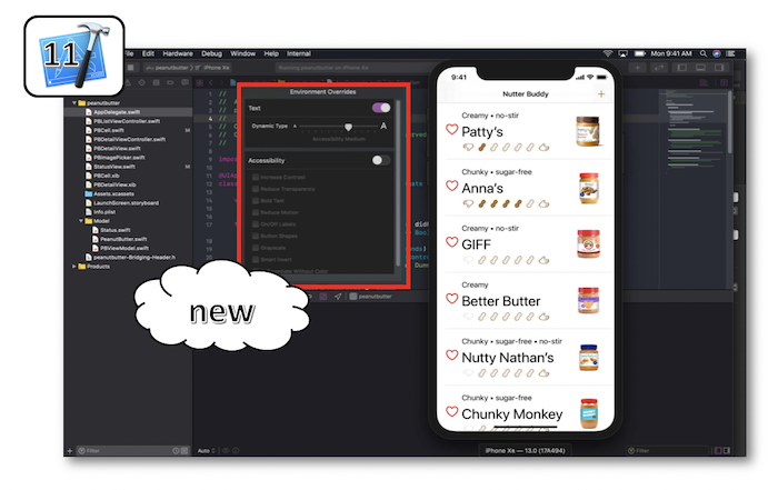 A new pane is available with Xcode 11 to vary the text size and to dynamically visualize its rendering on the simulator.