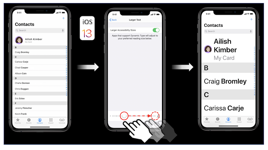 Reminder on the Dynamic Type feature whose goal is to customize the text size thanks to the user settings.