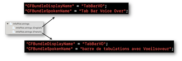 CFBundleSpokenName est la clé permettant d'adapter la vocalisation du texte définissant le nom d'une application qui, dans un cadre d'internationalisation, peut prendre différentes valeurs selon les langues visées.