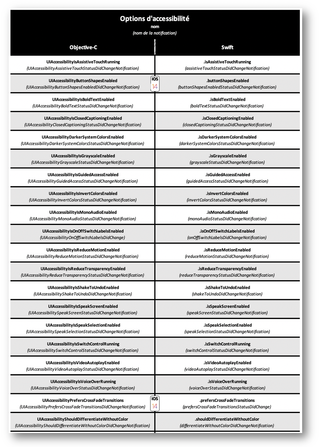 accessibilityTraitButton : ajoute le trait « bouton », l’élément est vu comme un bouton par VoiceOver,