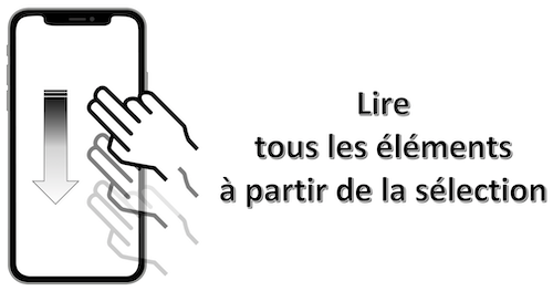 Mouvement : balayage avec 3 doigts vers le bas n'importe où sur l'écran.