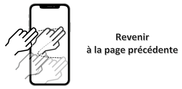 Mouvement : double tap avec 1 doigt en maintenant la pression n'importe où sur l'écran dès lors que le bouton de retour de la barre de navigation est sélectionné ⟹ nouveauté iOS 14.