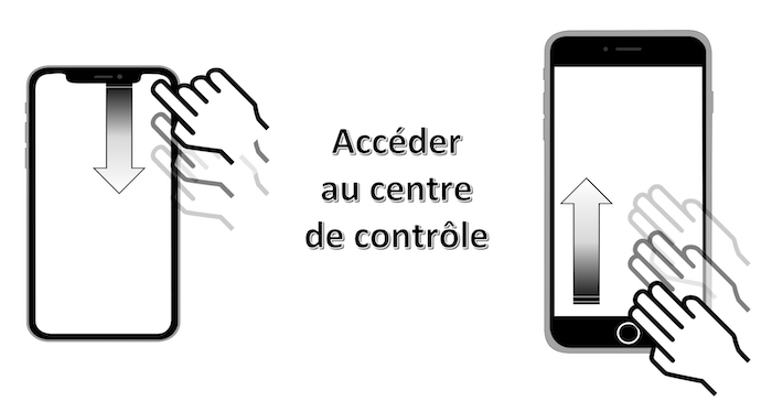 Mouvement : glissement avec 1 doigt vers le haut à partir du bas de l'écran et maintenir la pression.
